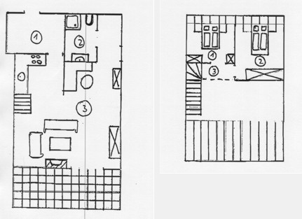 (1) Schlafzimmer 8m² (2) Schlafzimmer 11m² (3) Empore 1,5m²